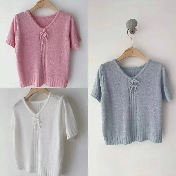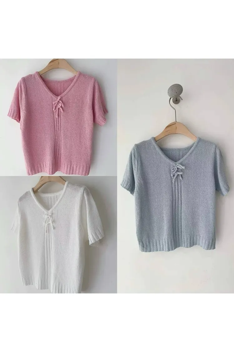 0658蝴蝶結V領針織上衣