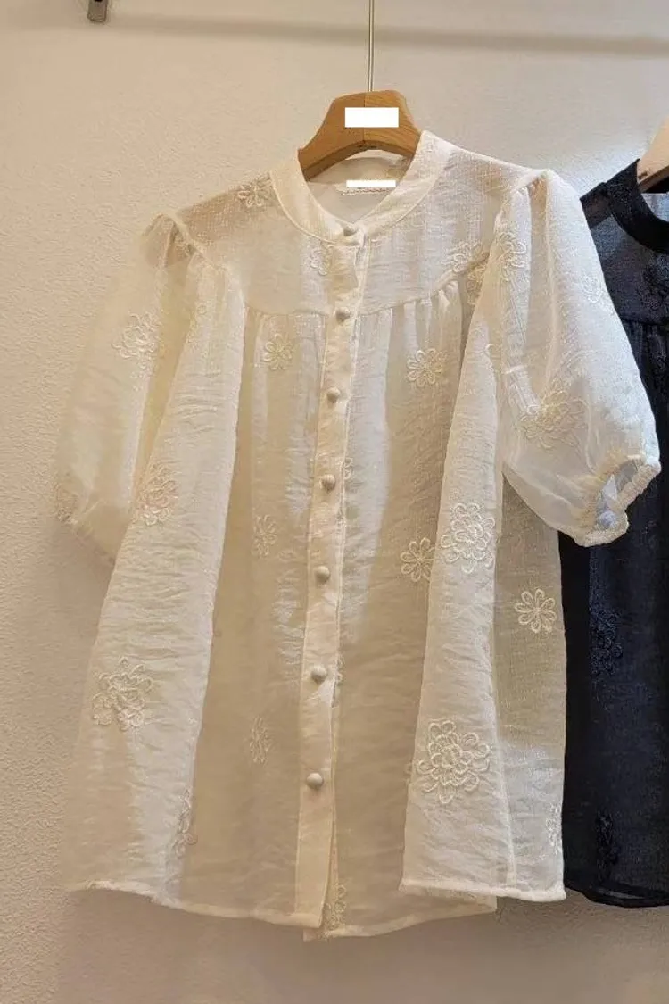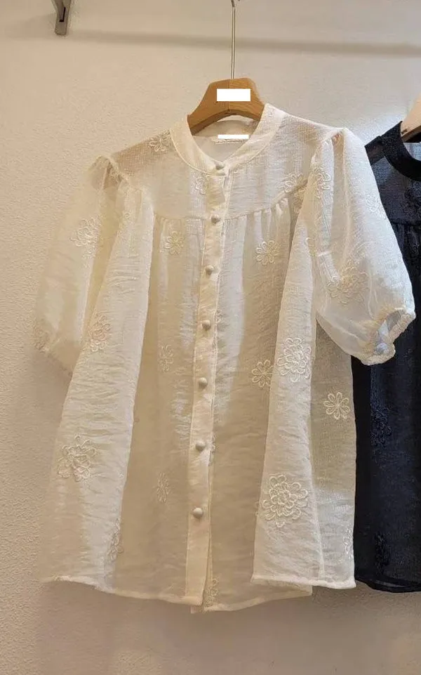 0718細閃緹花透膚上衣