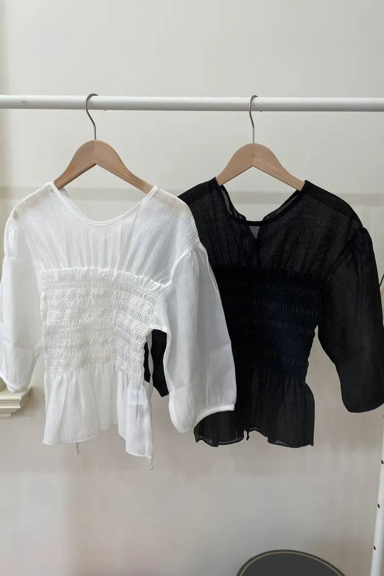 0722透膚皺褶上衣