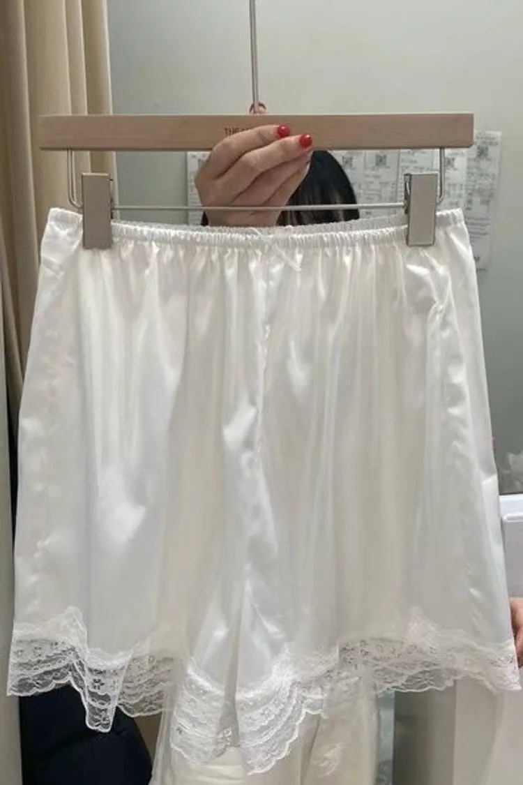 0748緞面蕾絲滾邊短褲