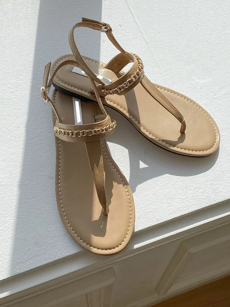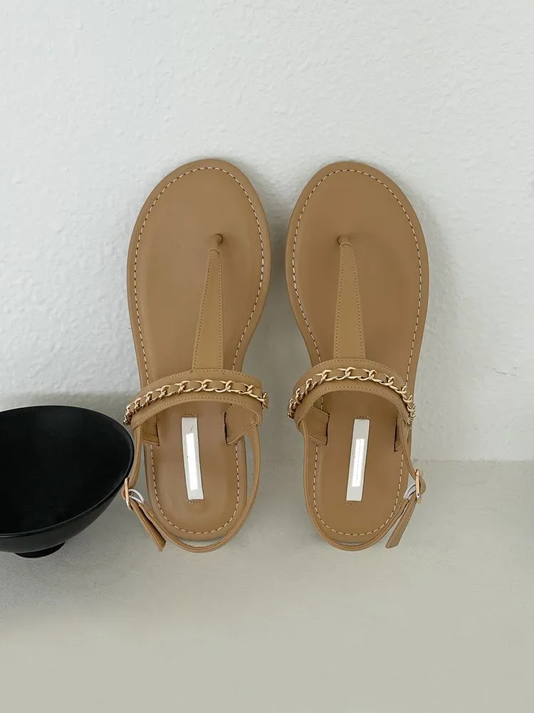BK907奶茶金鏈條涼鞋