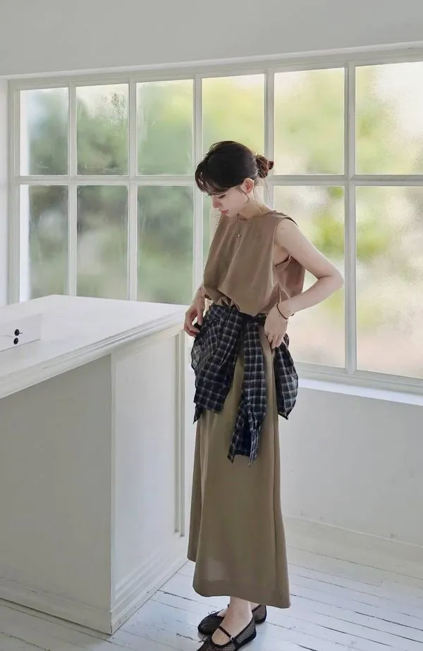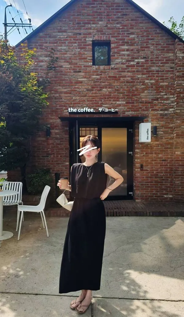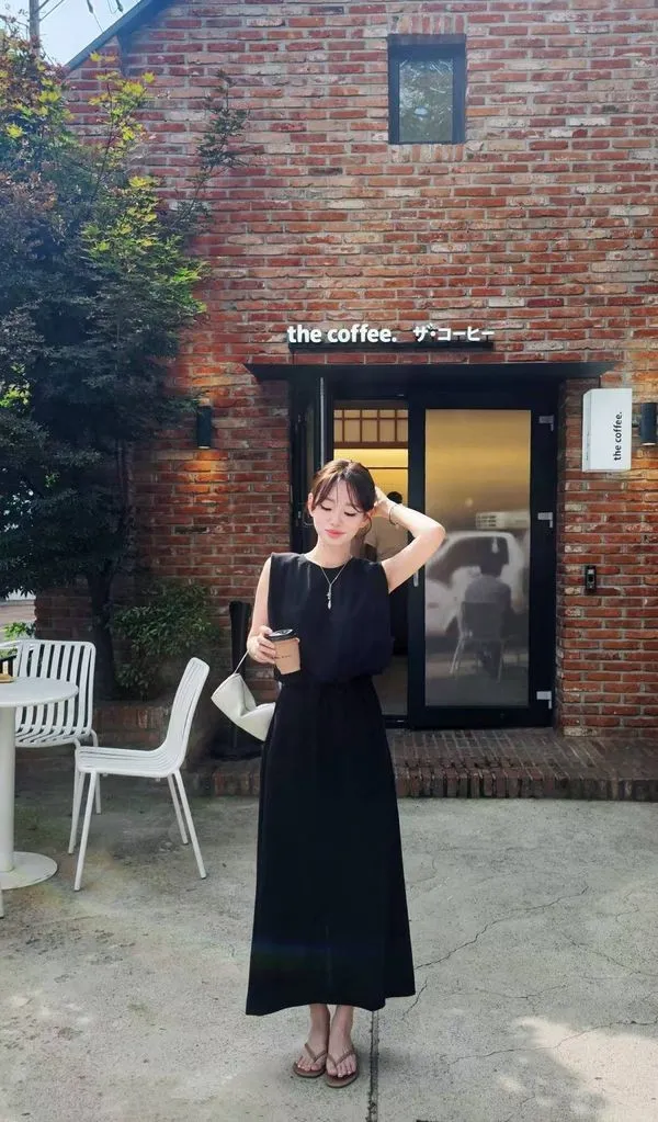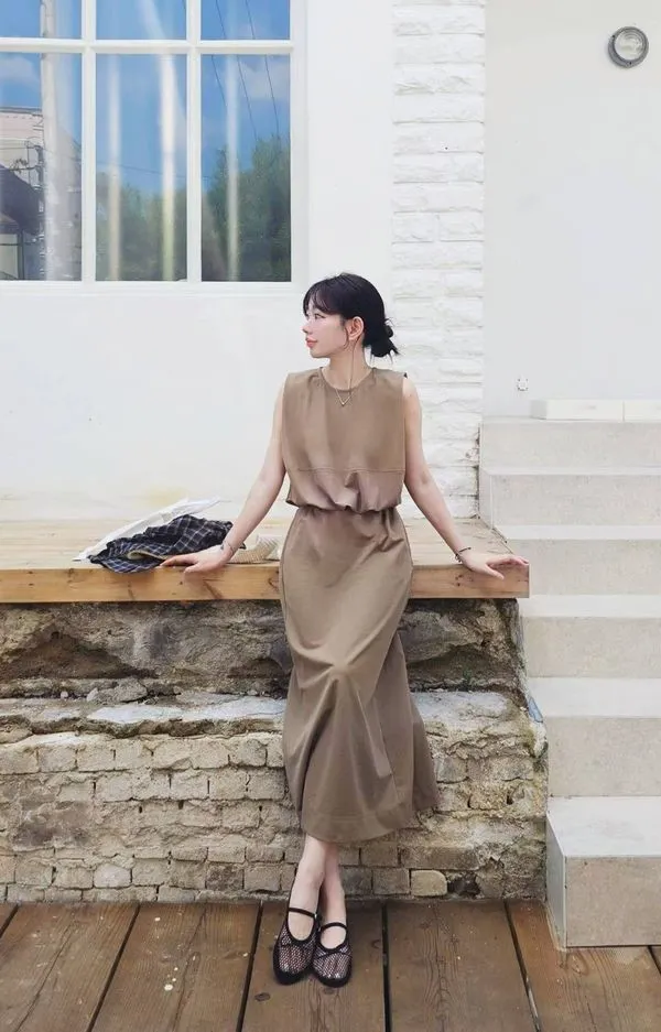 自帶高級感的極簡長洋裝🍂🍂,肩膀帶立體剪裁,修飾手臂又有設計感,搭配短靴和秋天外套類都好看😌🤗