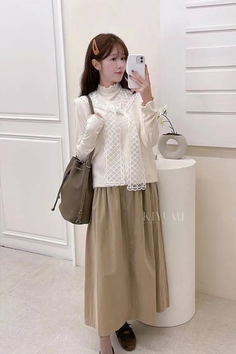 長84腰33-45臀72 👗韓模漢娜 161cm 42kg 腰25 ⦗洗滌說明⦘ ⓵ 棉麻.羊毛類衣物,建議乾洗.冷水手洗 ⓶ 深淺色建議分開洗滌以避免衣物染色。 ⓶ 如水洗請將衣物反面,放入洗衣袋並調整弱速機洗。 ⓷ 不可強力脫水及烘乾,以免布料縮水。