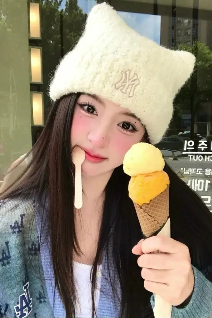 CA011MLB貓耳針織毛帽