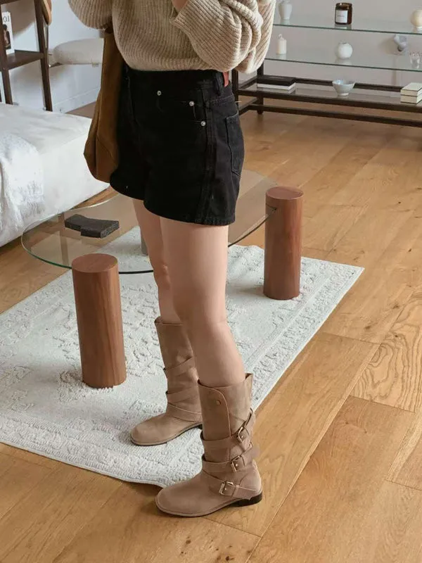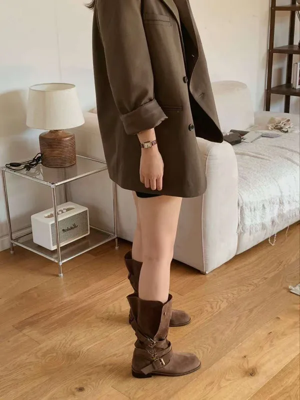 CB1713麂皮釦環中筒靴