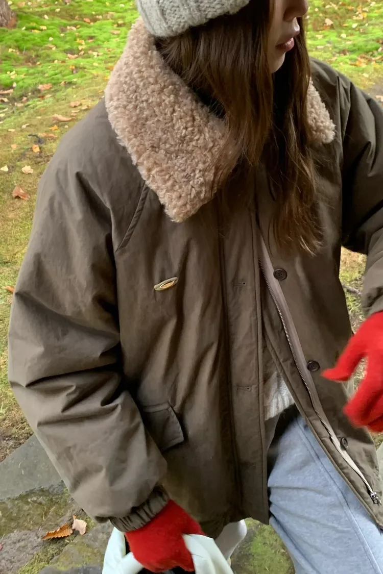 毛領可拆 有內裡 長75胸65 ⦗洗滌說明⦘ ⓵ 棉麻.羊毛類衣物,建議乾洗.冷水手洗 ⓶ 深淺色建議分開洗滌以避免衣物染色。 ⓶ 如水洗請將衣物反面,放入洗衣袋並調整弱速機洗。 ⓷ 不可強力脫水及烘乾,以免布料縮水。