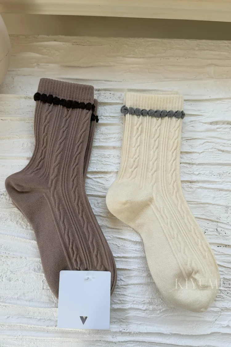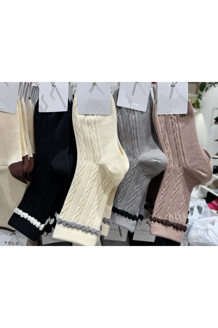 CC012撞色麻花襪