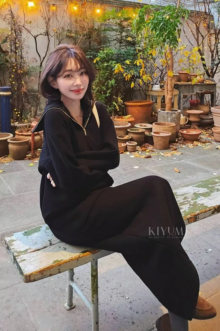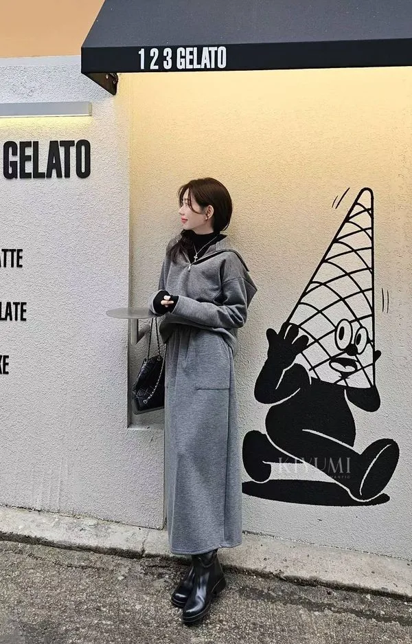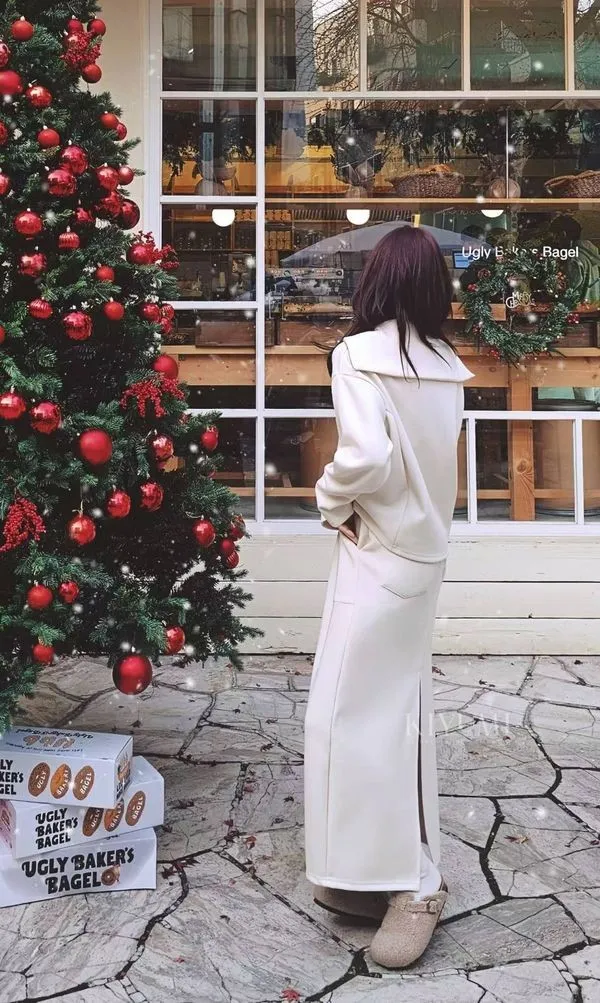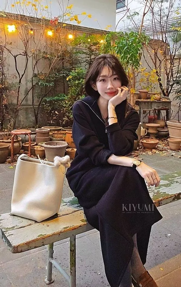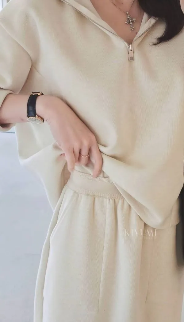 高質感細緻羅馬布面料,5%羊毛混仿,完全親膚柔軟不會刺癢,中等厚度布料~。上衣拉鍊設計可以穿成高領或是大翻領,前後的兩側都有做腰線剪裁,裙子也是Hline,修身顯瘦設計