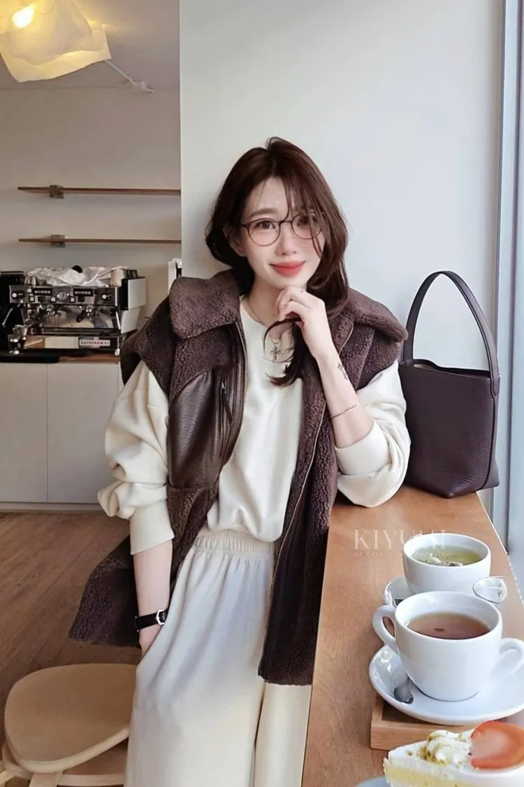 又颯又美還有滿滿鬆弛感的一款羔羊毛馬甲外套🥰😎,寬鬆版型,落肩蓋袖的效果,可以搭配休閒日常,或是裙裝洋裝等都很好看~🐑🐑
