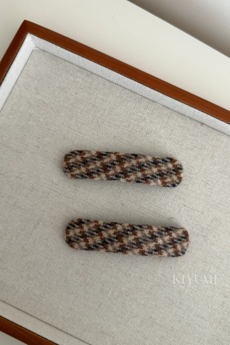 CB1711紫色毛呢格紋髮夾組