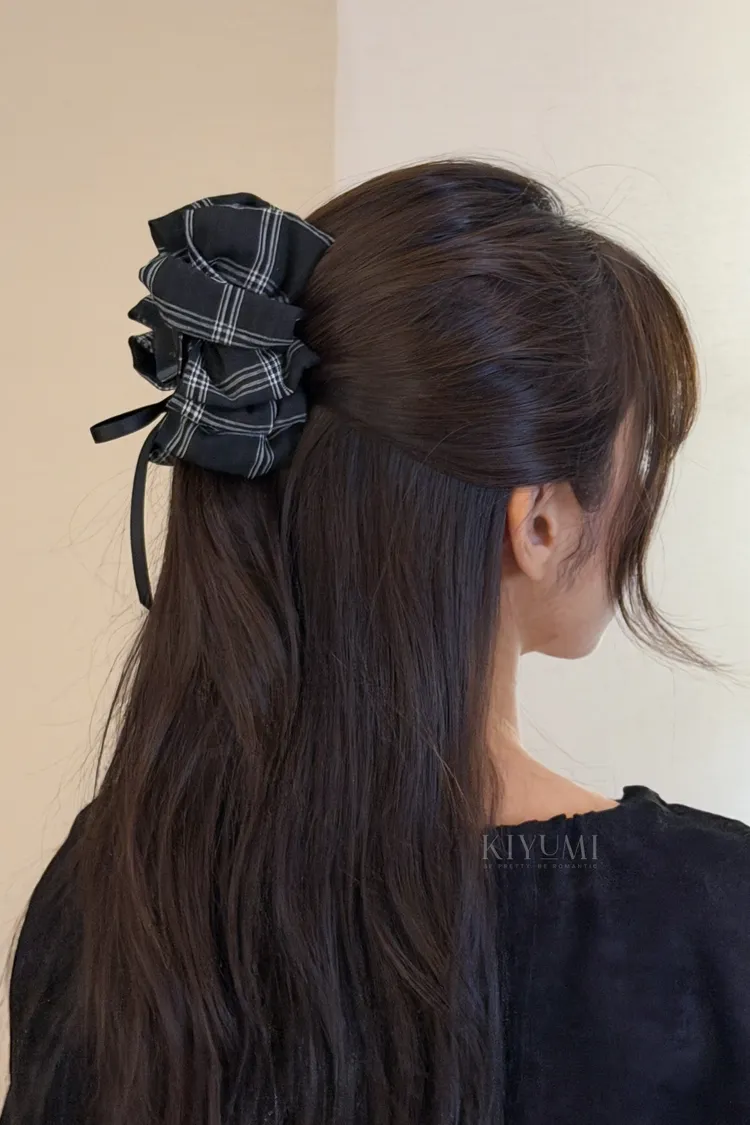 CD113黑白格紋蝴蝶結抓夾