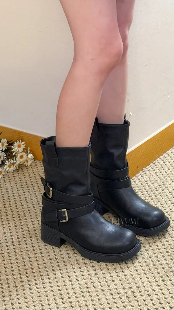 CD114kiki私物~內刷絨釦環中筒靴