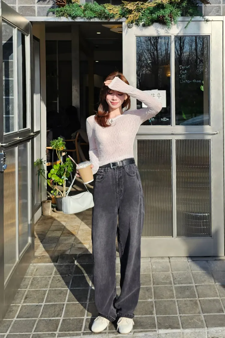 這款尺寸因為做鬆緊腰,所以只有做兩個尺寸,如果想穿照片上歐尼那樣鬆弛感,XS~小M身材選擇S,M~L身材選擇M。歐尼的正常腰圍約22吋,S對她而言有點大,單穿掛在中低腰,也可以加腰帶穿高一點