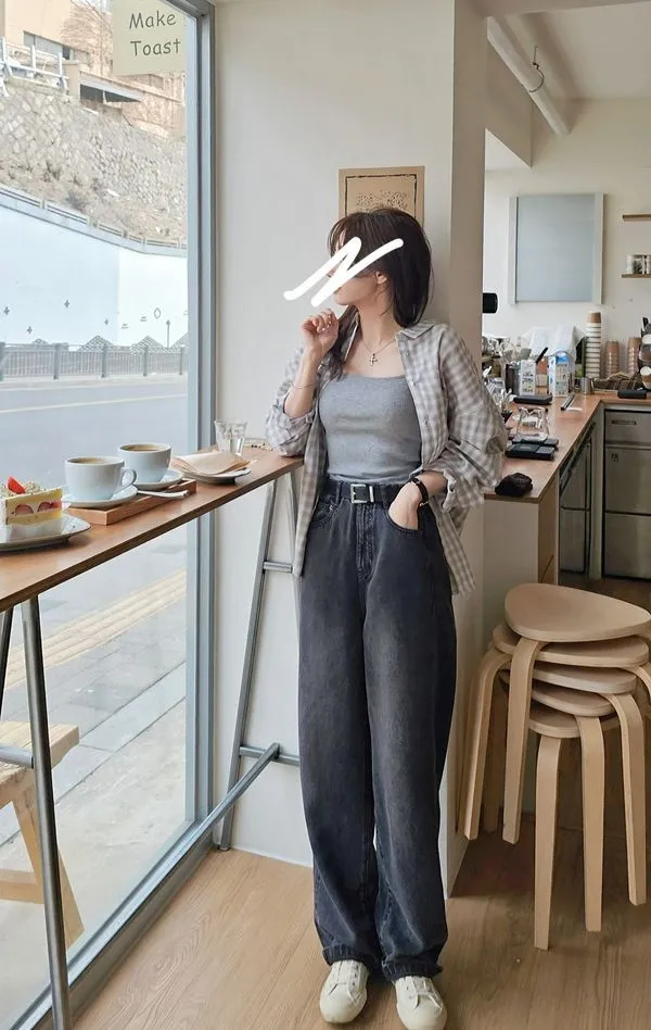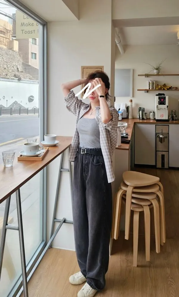 ★搭配:CE051春天的彈力蕾絲打底衫/ 坑條雙肩帶Bratop+韓里韓氣的格紋襯衫
