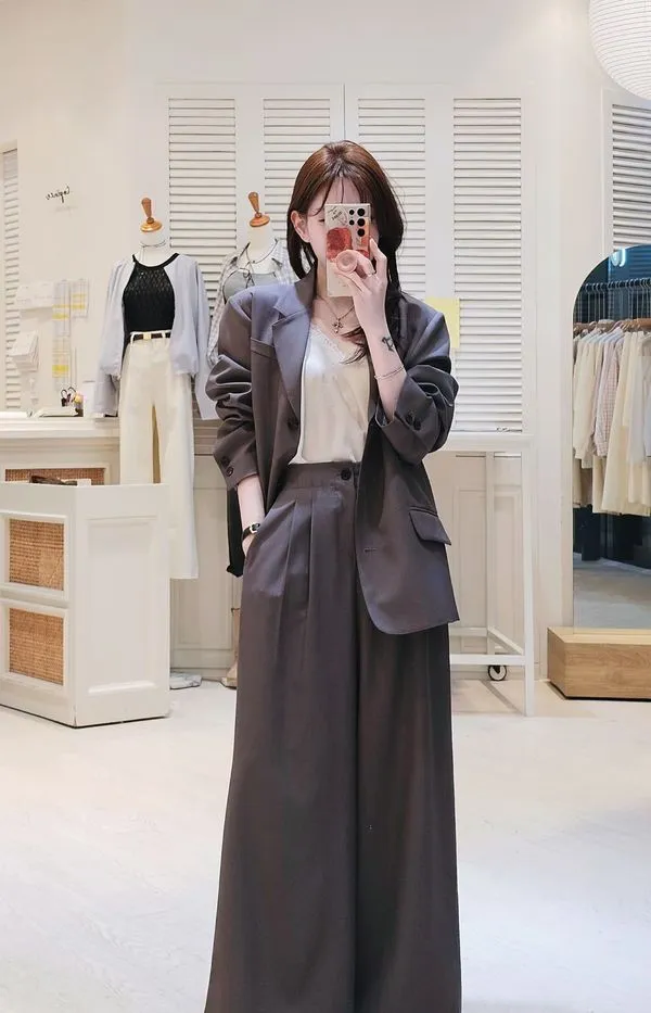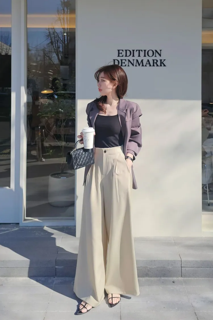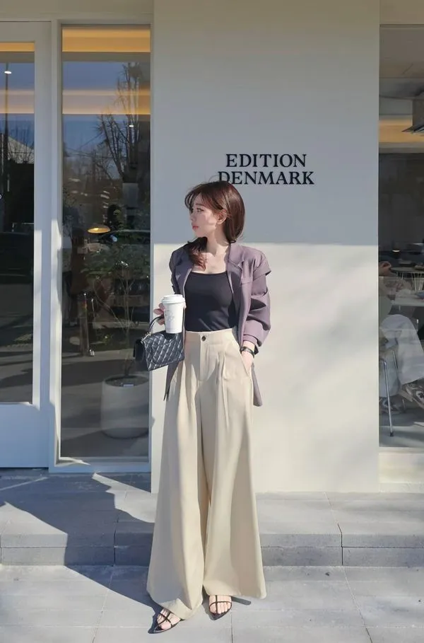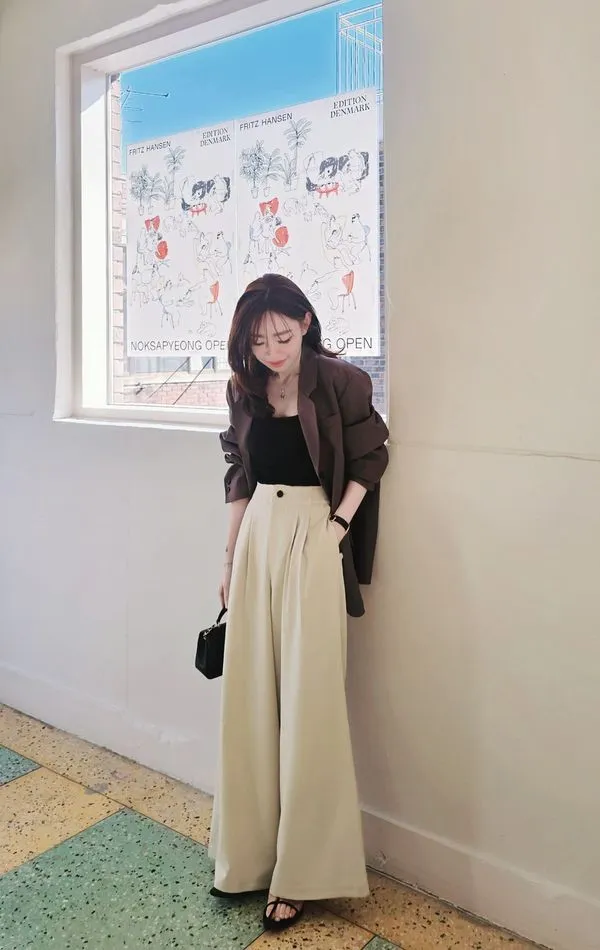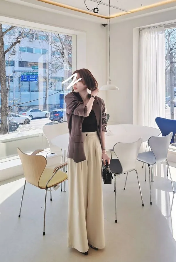時髦精的闊腿西褲,大家都知道歐尼超會做西褲版型的吧😎~ 隨意搭配罩衫或是T恤就是時髦女孩,配同款同色西外穿著或是跳色也都好看🤌😍