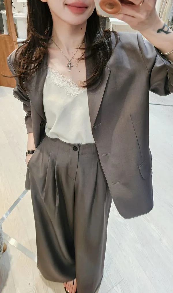 西裝面料觸感精緻高級,手感非常細緻薄而有挺度👌 和同布料西外可以穿成套裝,但是因為每批布料會有缸差,有可能在顏色上會有細微不同,請注意~