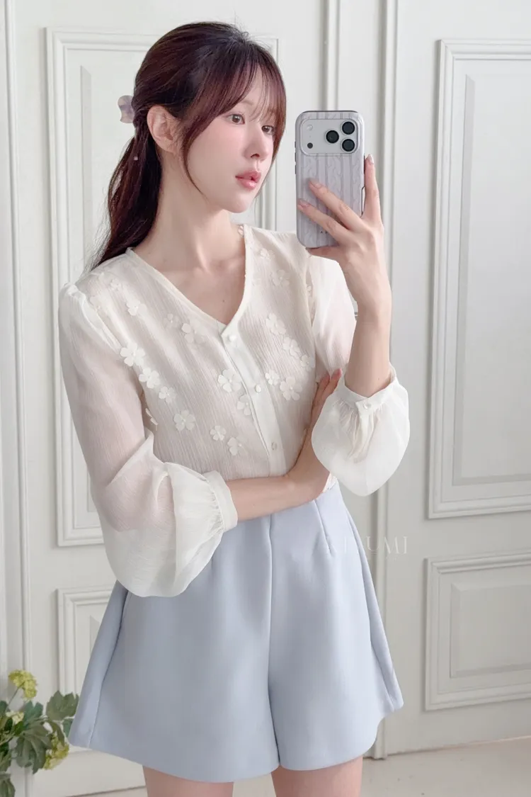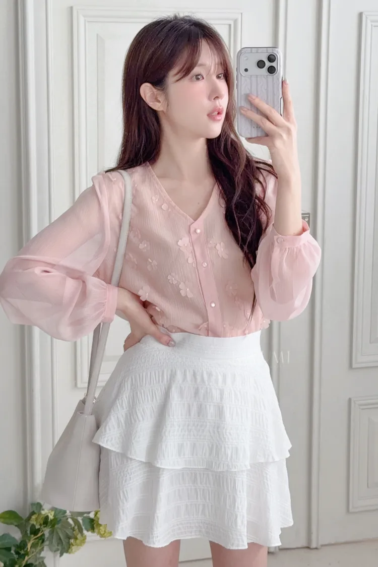 長57肩38胸50 雪紡 有內裡 花朵是縫上的 👗韓模漢娜 161cm 42kg ⦗洗滌說明⦘ ⓵ 一般羊毛針織.棉麻建議冷水手洗。 ⓶ 深淺色建議分開洗滌以避免衣物染色。 ⓷ 不可強力脫水及烘乾,以免布料縮水。
