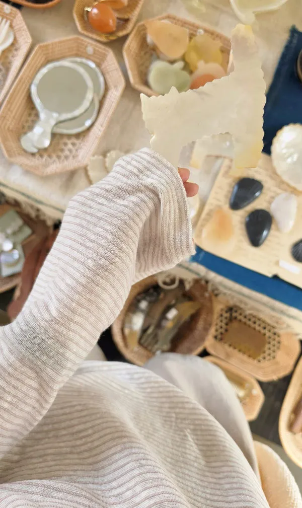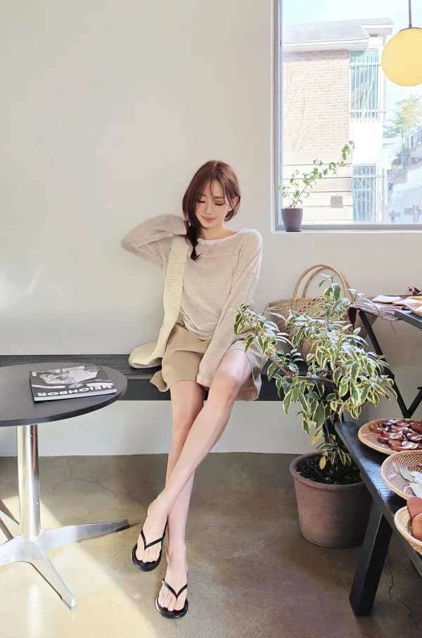 支數很細緻的亞麻面料,輕盈舒適親膚,不會刺癢,布料薄而不太透,質感非常好