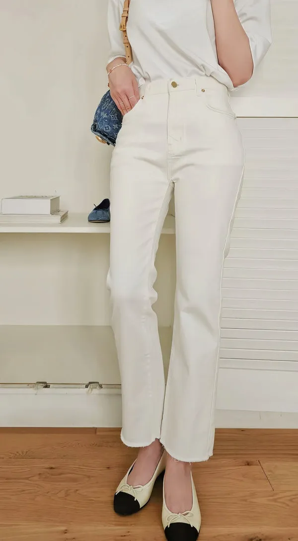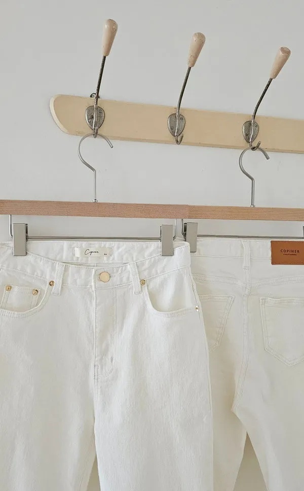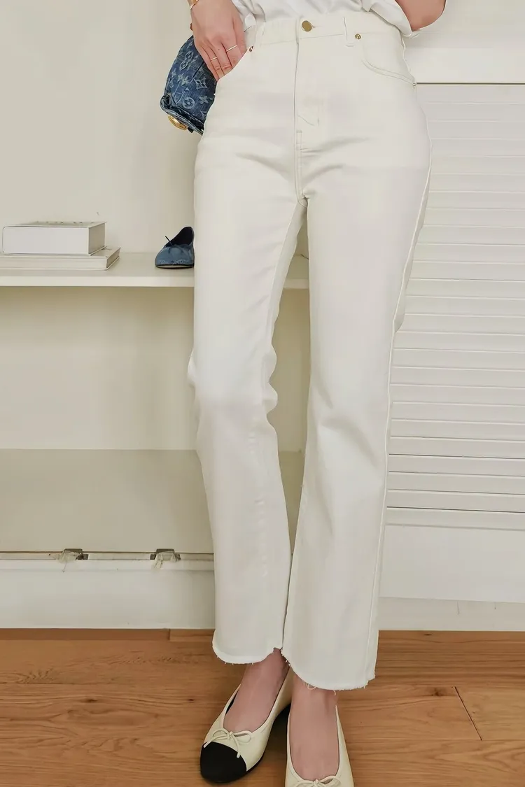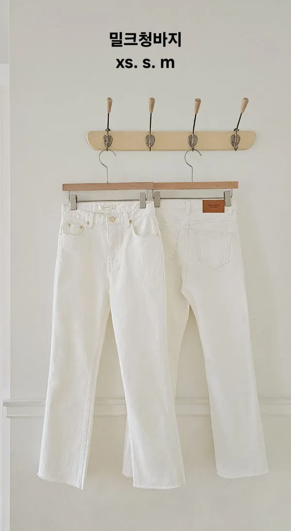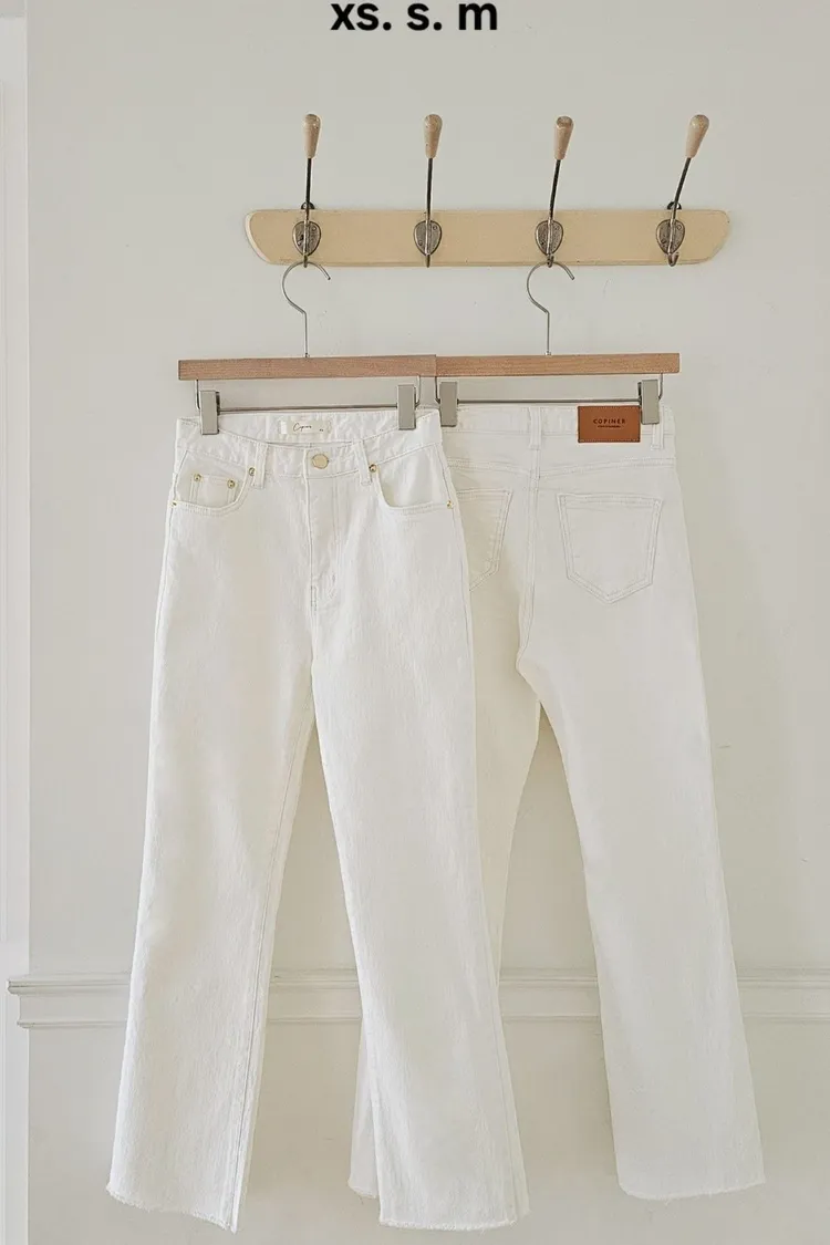 顏色是漂亮的牛奶白,丹寧布料質感非常好,((奶油褲系列的布料都是日本進口的喔 ! !)),米金色金屬副料,後腰頭有品牌皮標,