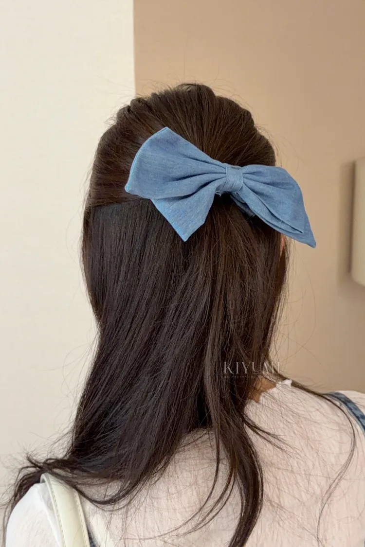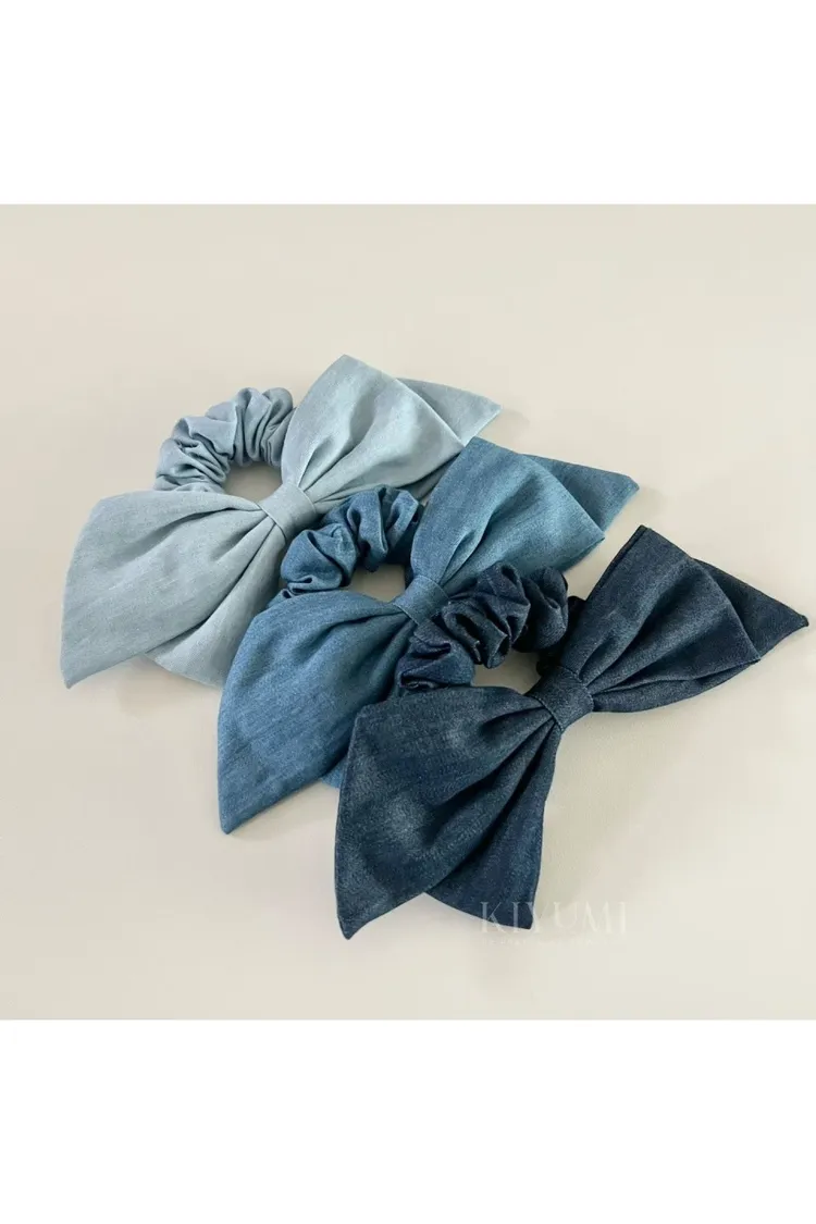 CF612蝴蝶結牛仔髮圈 (淺藍/中藍/深藍)