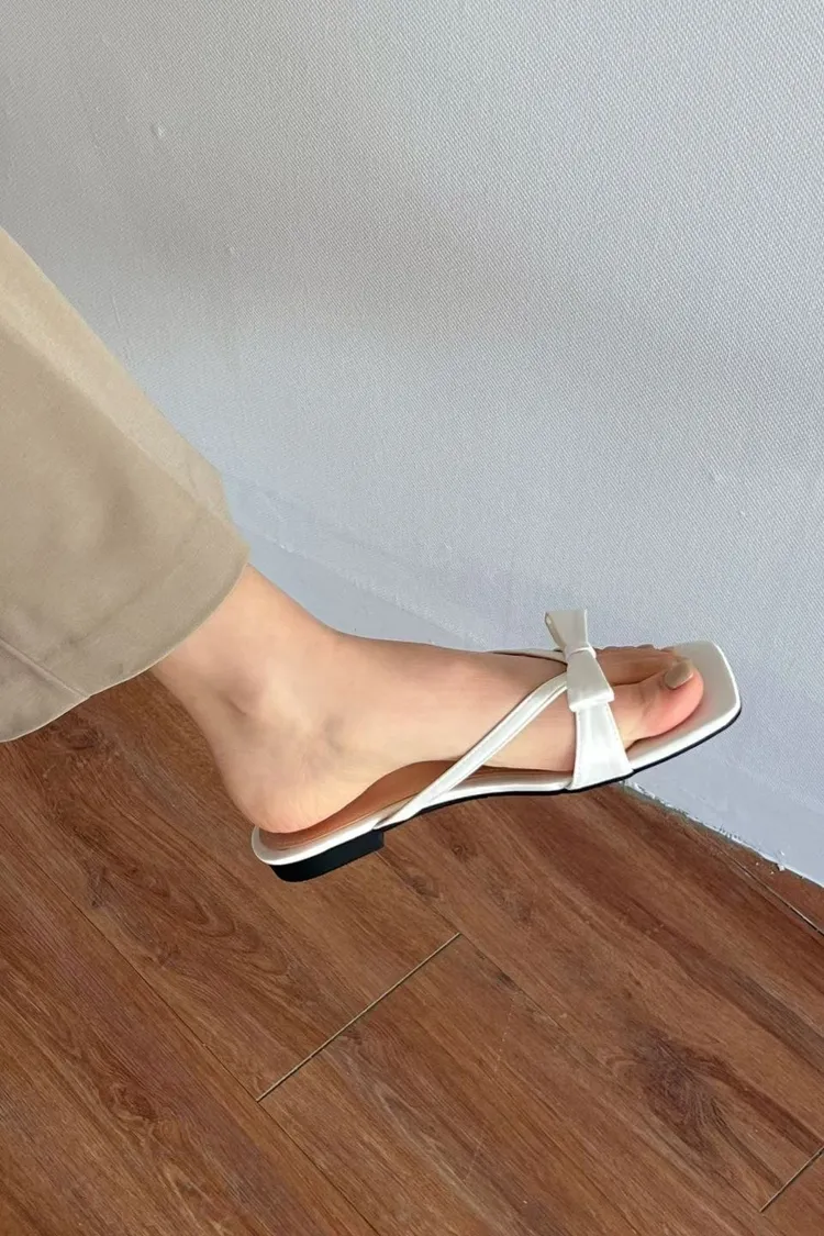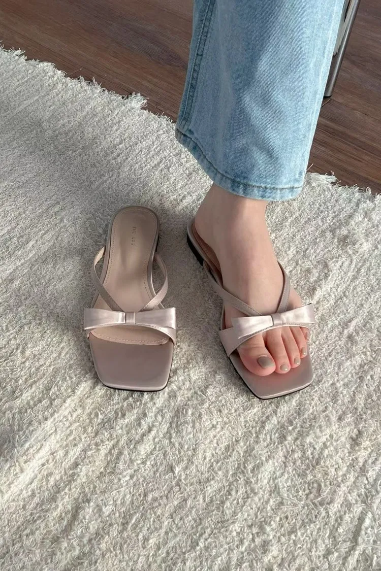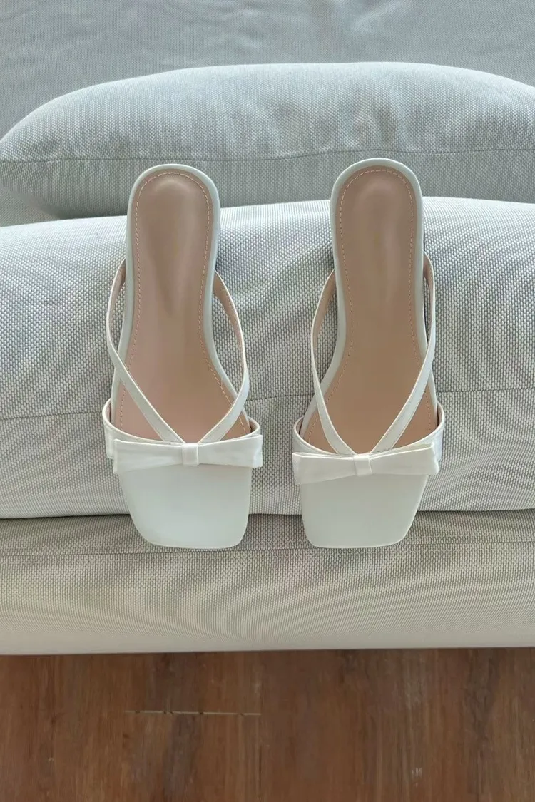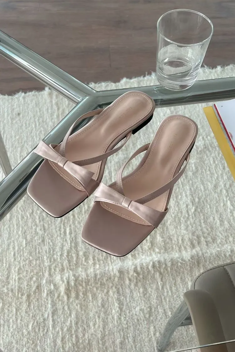 CG605緞面蝴蝶結拖鞋 (白/杏)