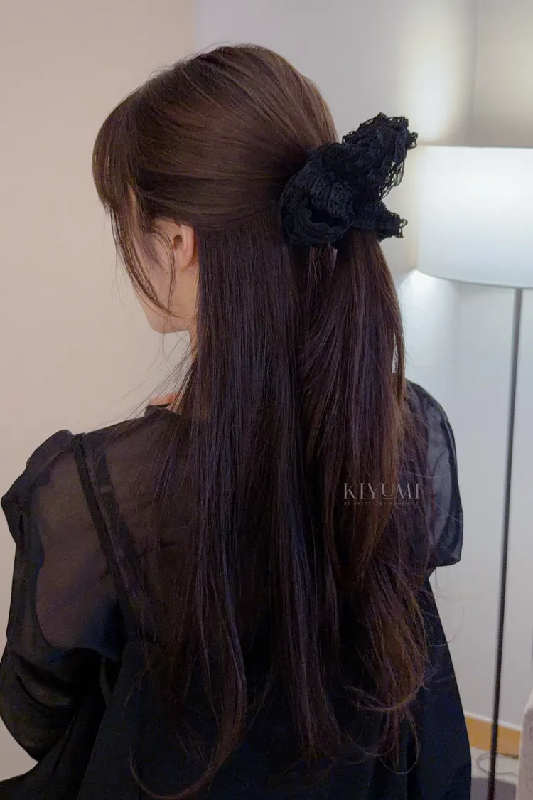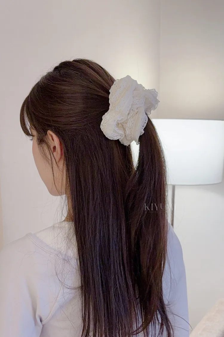 CG628蕾絲層次髮圈 (米白/黑)